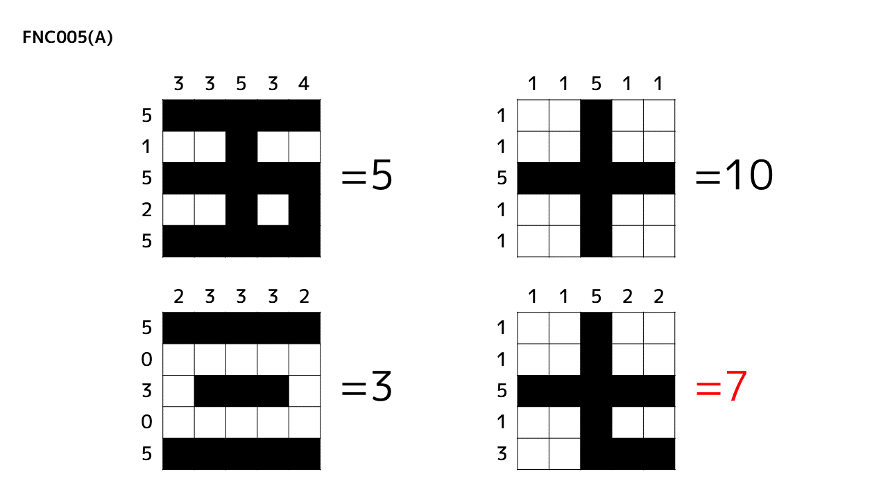 この操作により、マス目にはペアの値の漢数字表記が現れるので、解答すべきは 7 となります。