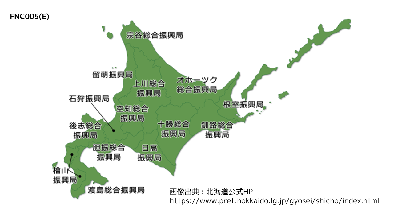 残りはオホーツク総合振興局なので、解答すべきは オ または お となります。