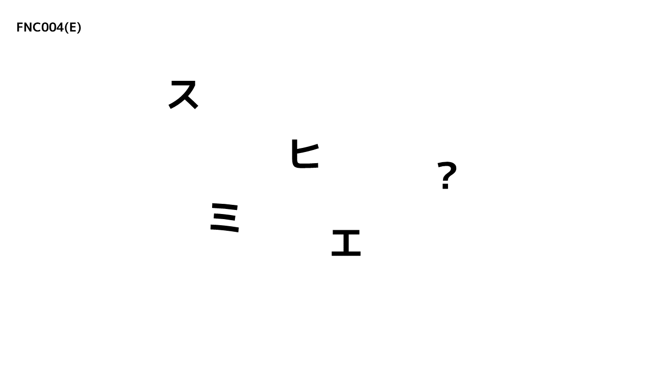 次の図のカタカナはそれぞれあるものの頭文字である。?の位置に入るカタカナ1文字を全角で答えよ。