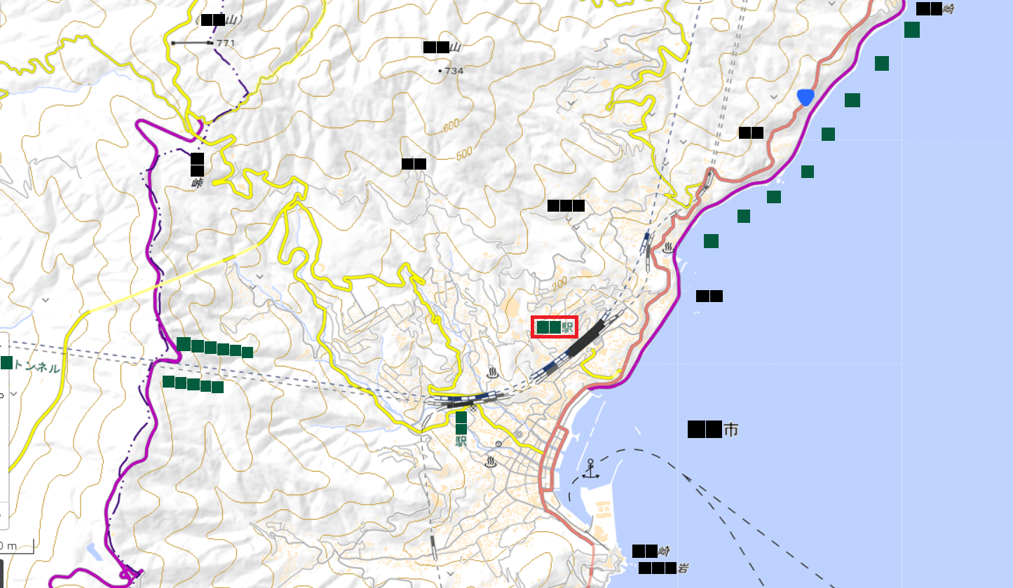 画像中央の駅の名前 (赤枠) を漢字で答えてください。