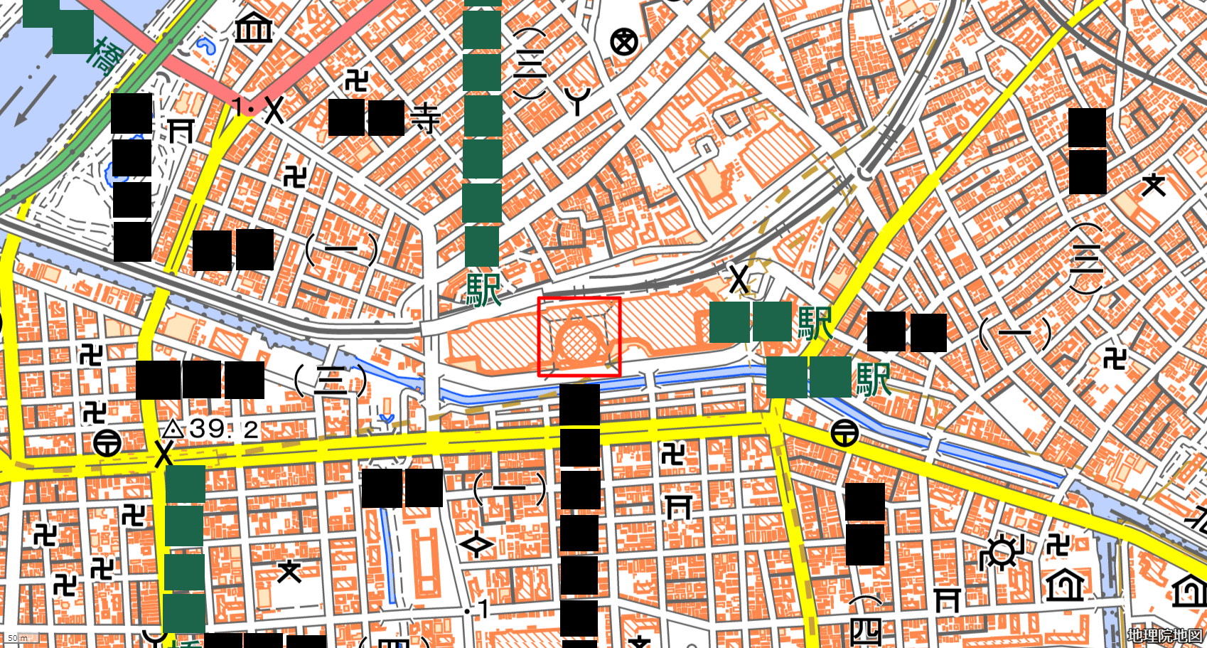 画像中央の赤枠で囲まれた施設の名称を日本語で解答してください。
