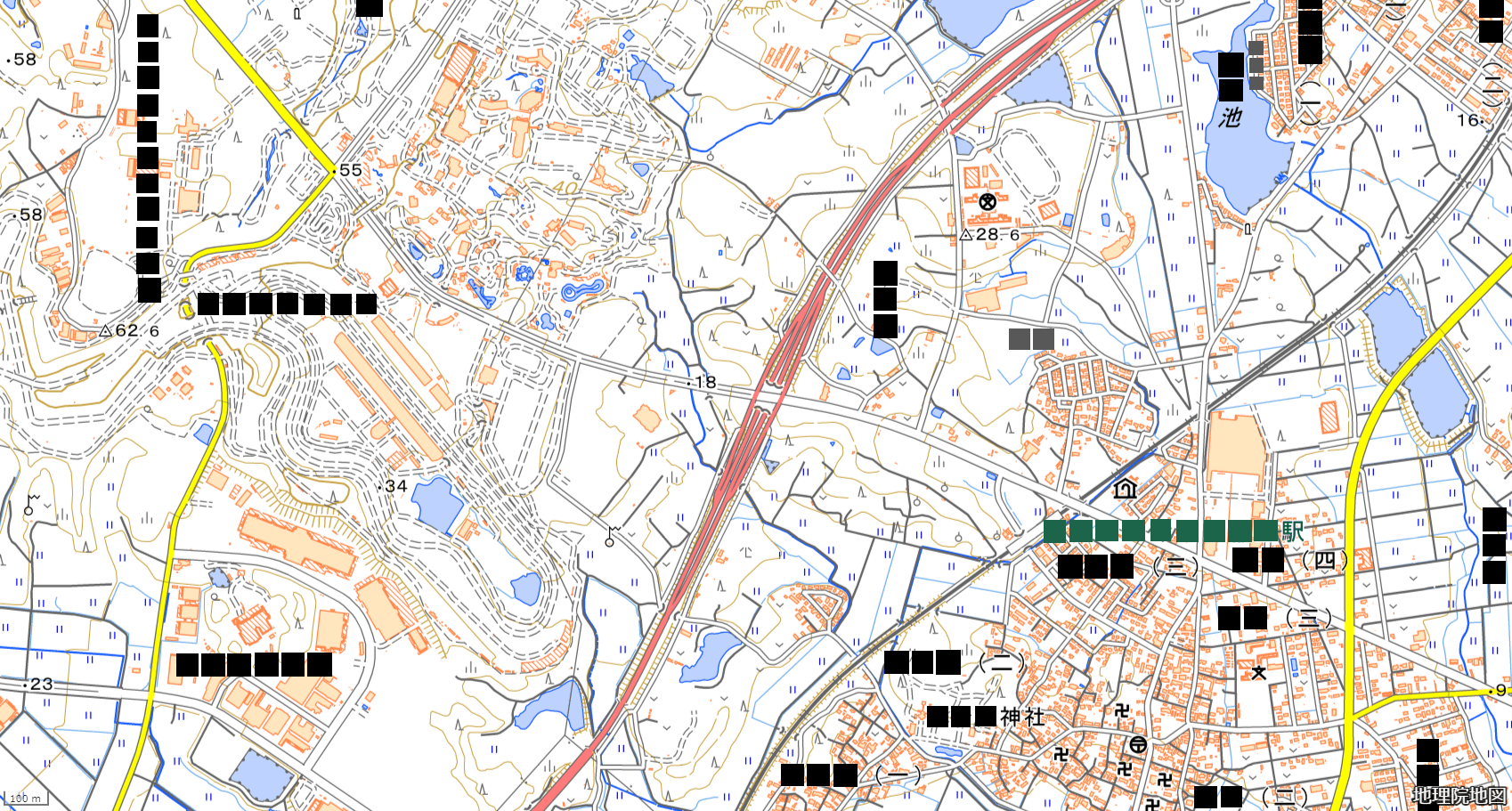画像:電子地形図25000 (国土地理院) 標準地図を加工して作成。