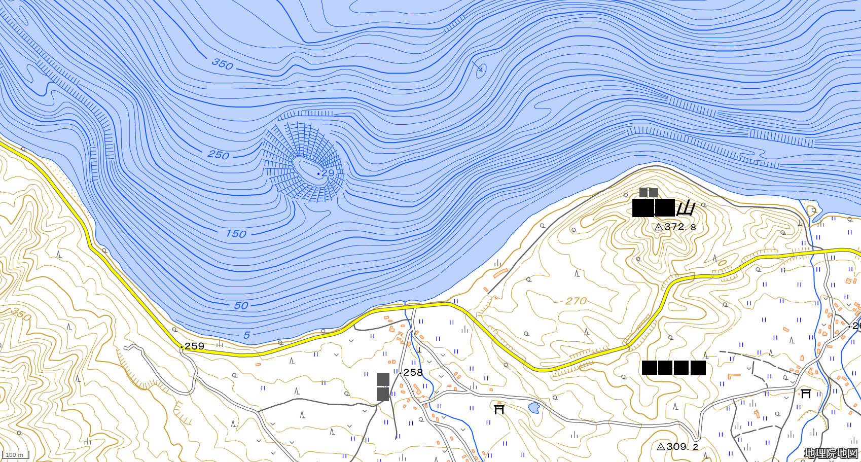 画像:電子地形図25000 (国土地理院) 標準地図を加工して作成。