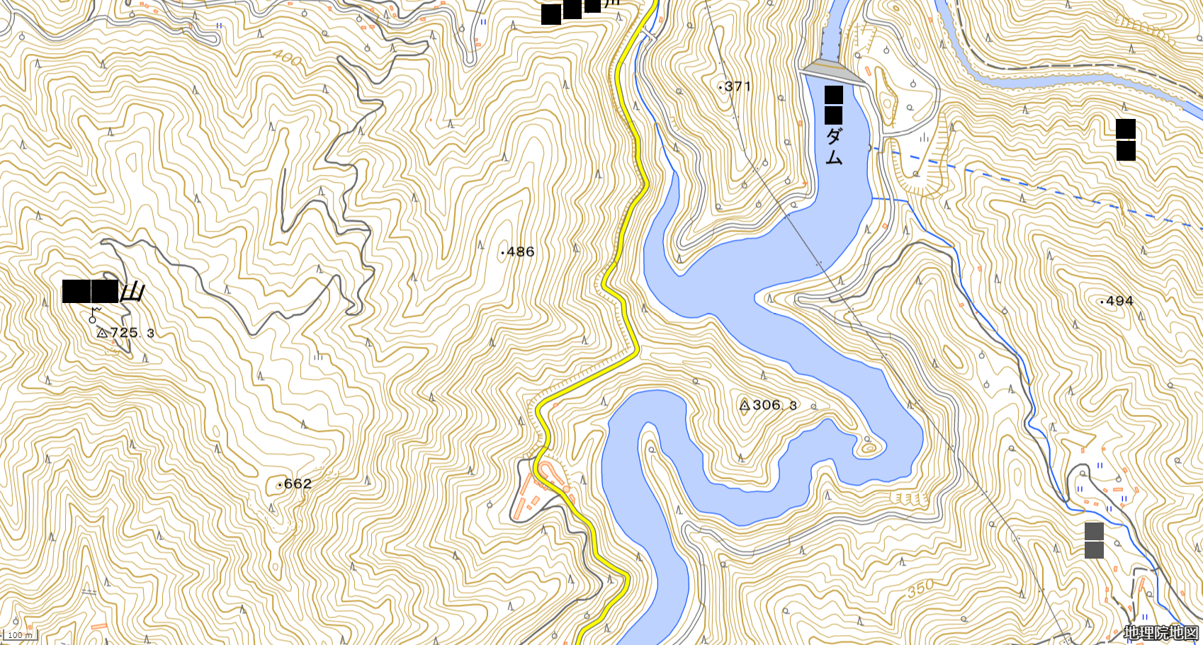 画像:電子地形図25000 (国土地理院) 標準地図を加工して作成。