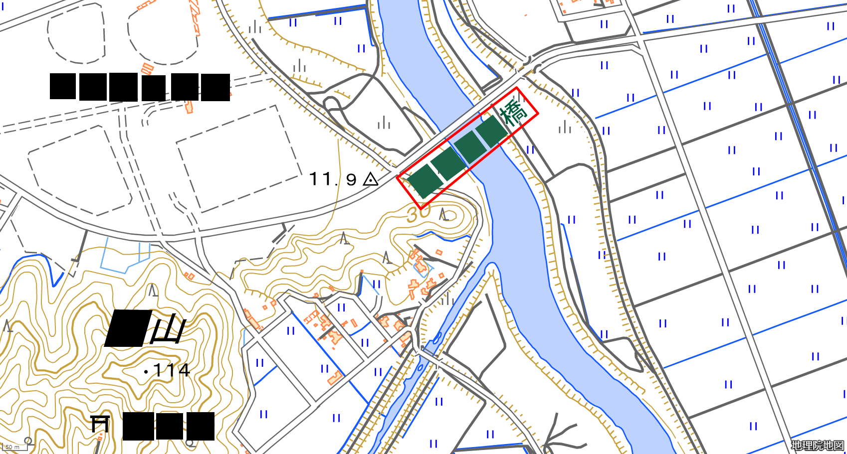 画像:電子地形図25000 (国土地理院) 標準地図を加工して作成。