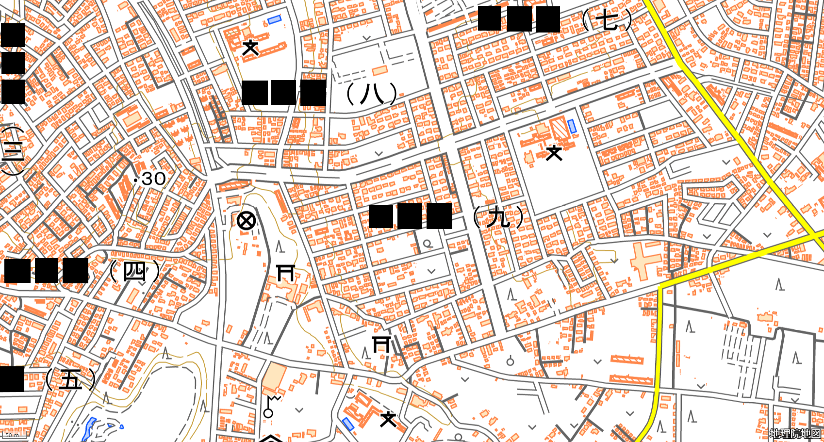 画像:電子地形図25000 (国土地理院) 標準地図を加工して作成。