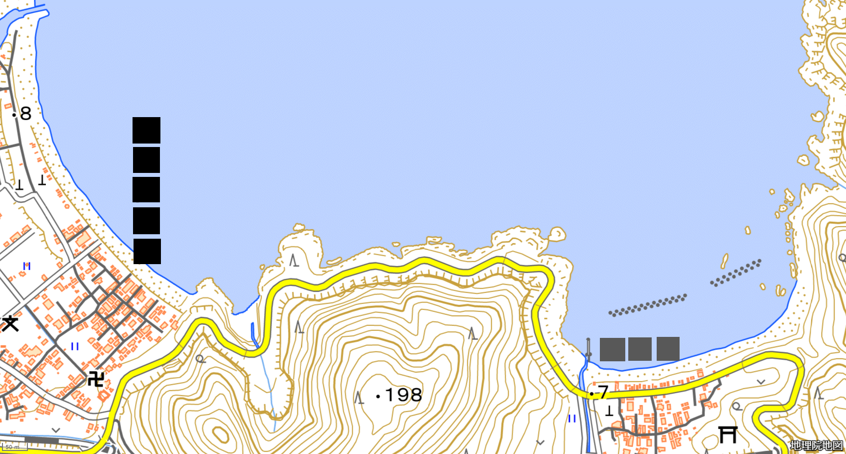 画像:電子地形図25000 (国土地理院) 標準地図を加工して作成。