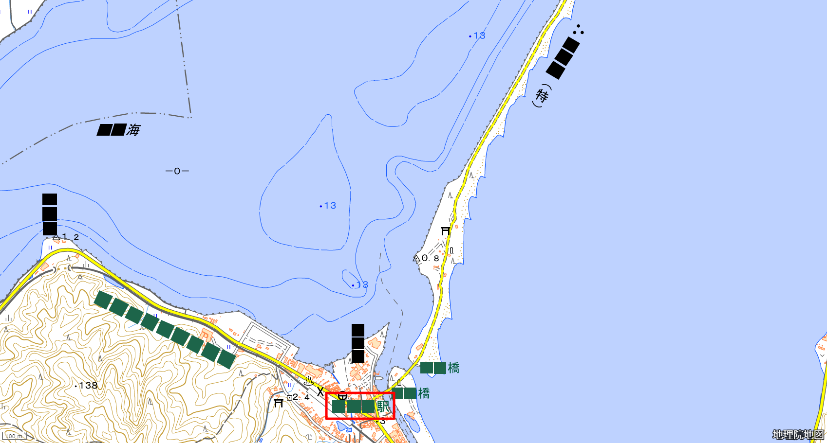 画像下中央にある駅の名前 (赤枠) を漢字で答えてください。
