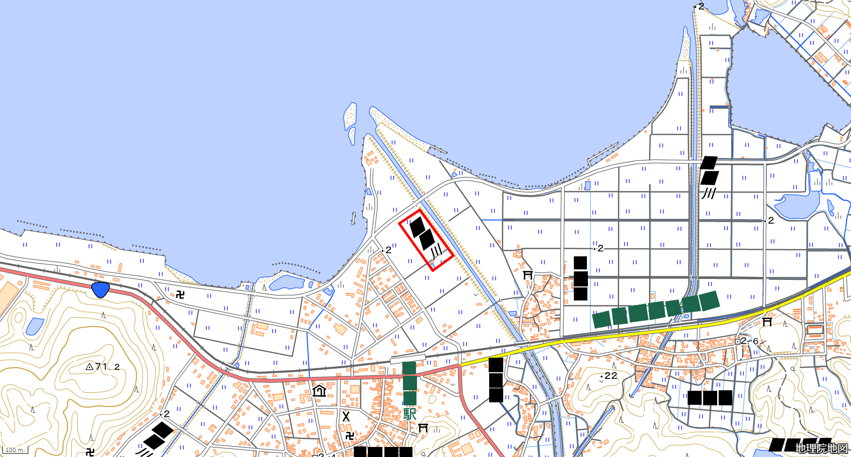 画像:電子地形図25000 (国土地理院) 標準地図を加工して作成。
