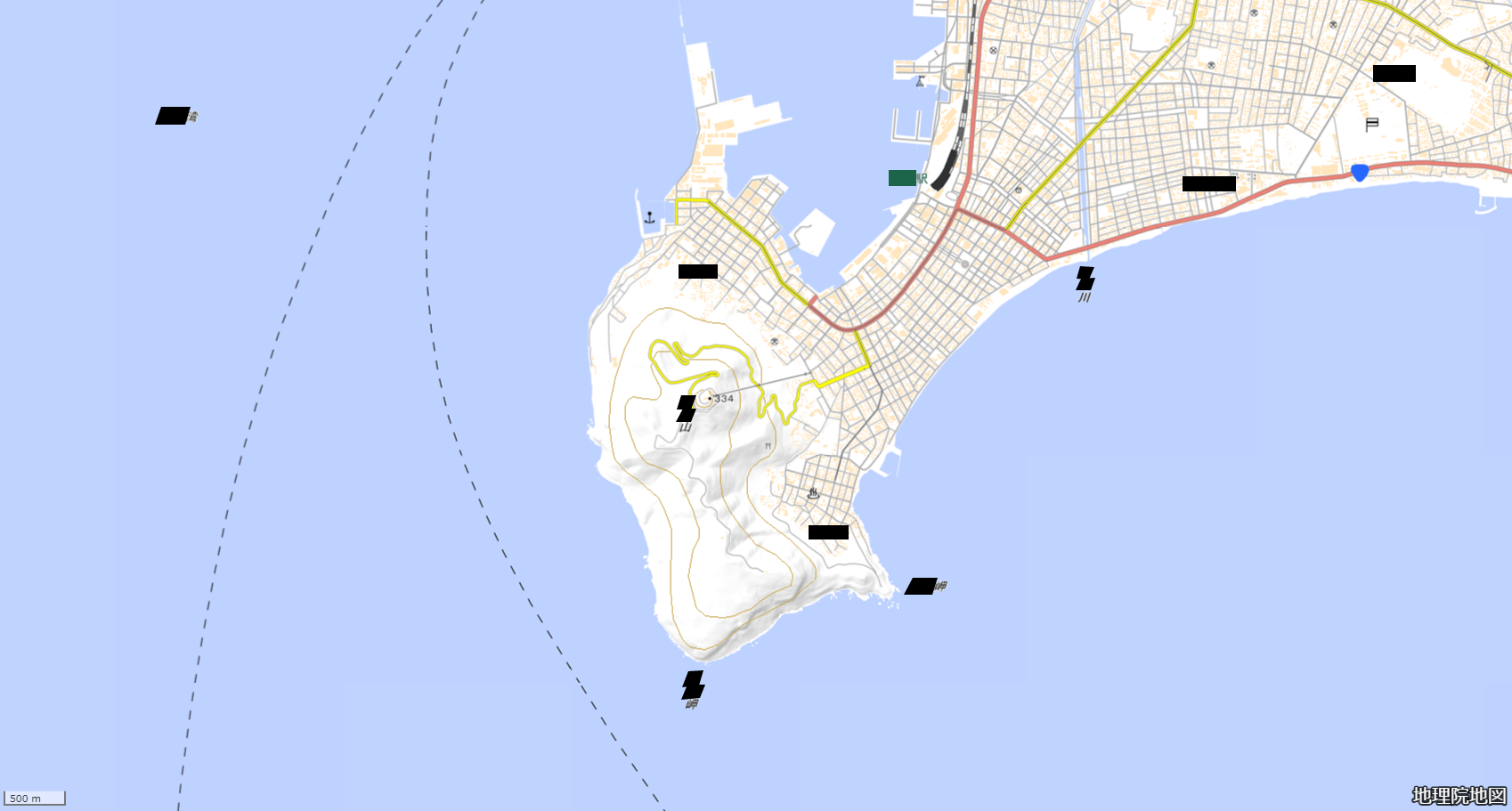画像:電子地形図25000 (国土地理院) 標準地図を加工して作成。