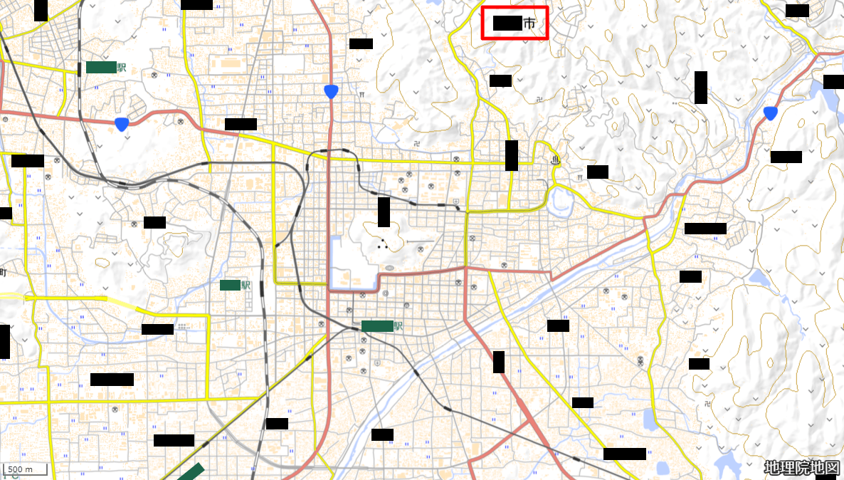 画像:電子地形図25000 (国土地理院) 標準地図を加工して作成。