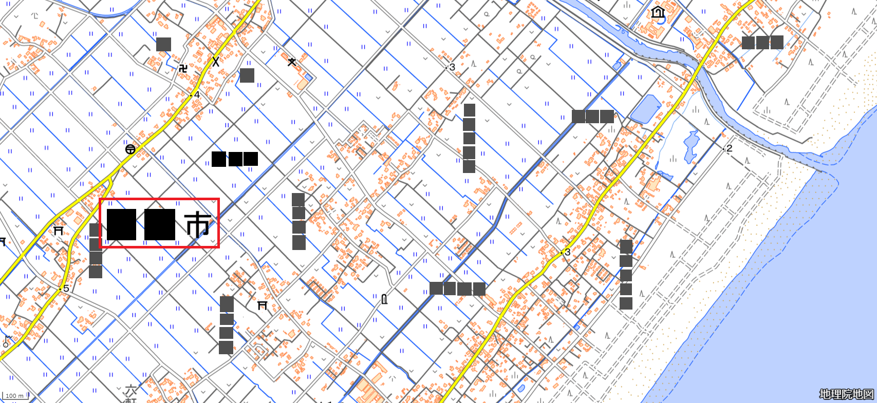 画像の場所を含む市区町村名 (赤枠)を漢字で答えてください。