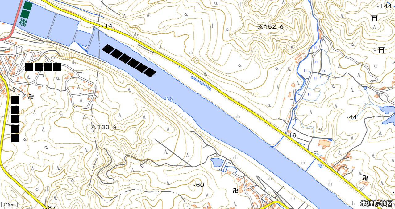 画像:電子地形図25000 (国土地理院) 標準地図を加工して作成。