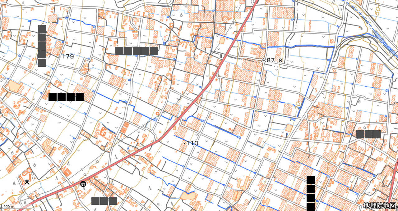 画像:電子地形図25000 (国土地理院) 標準地図を加工して作成。