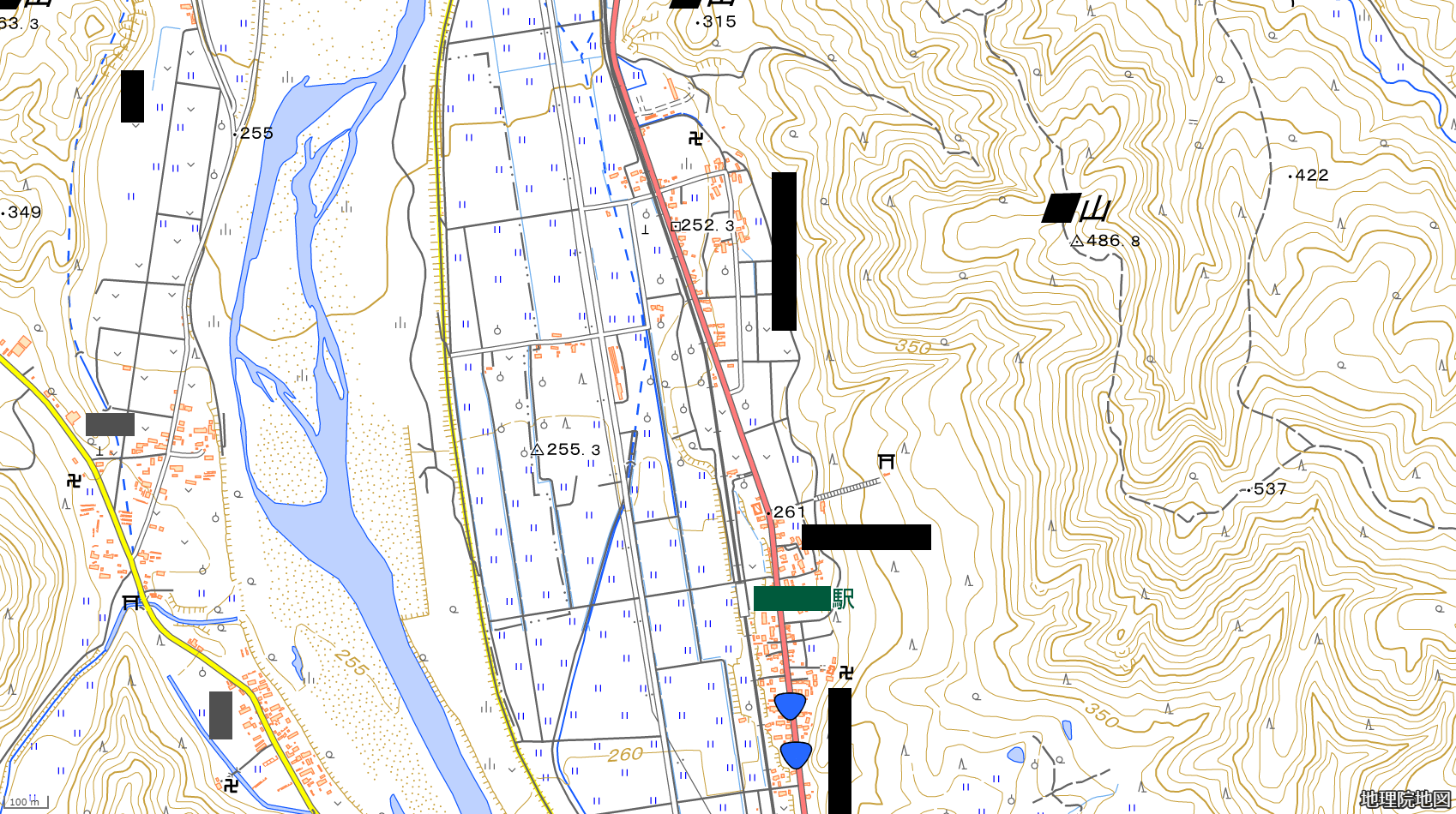 画像:電子地形図25000 (国土地理院) 標準地図を加工して作成。