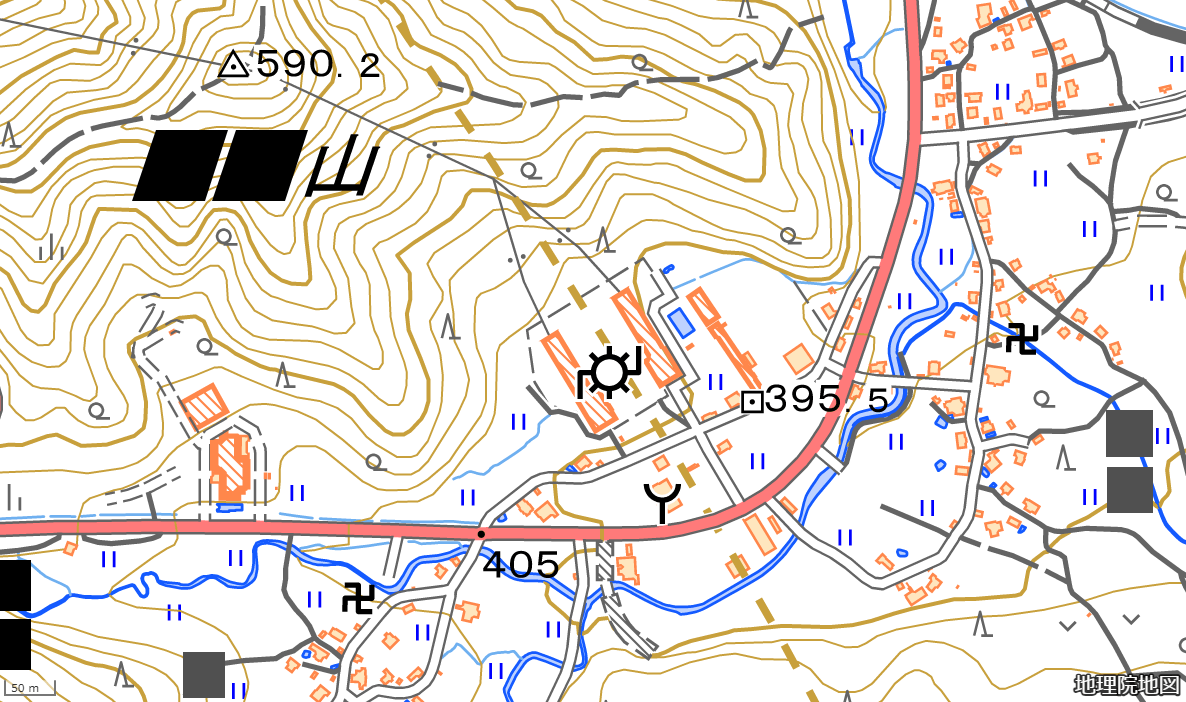 画像:電子地形図25000 (国土地理院) 標準地図を加工して作成。
