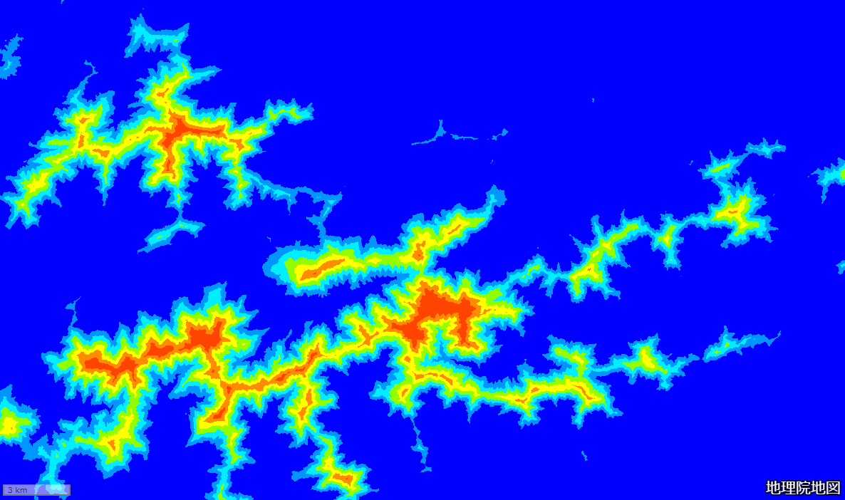 画像:電子地形図25000 (国土地理院) 「自分で作る色別標高図」で作成。