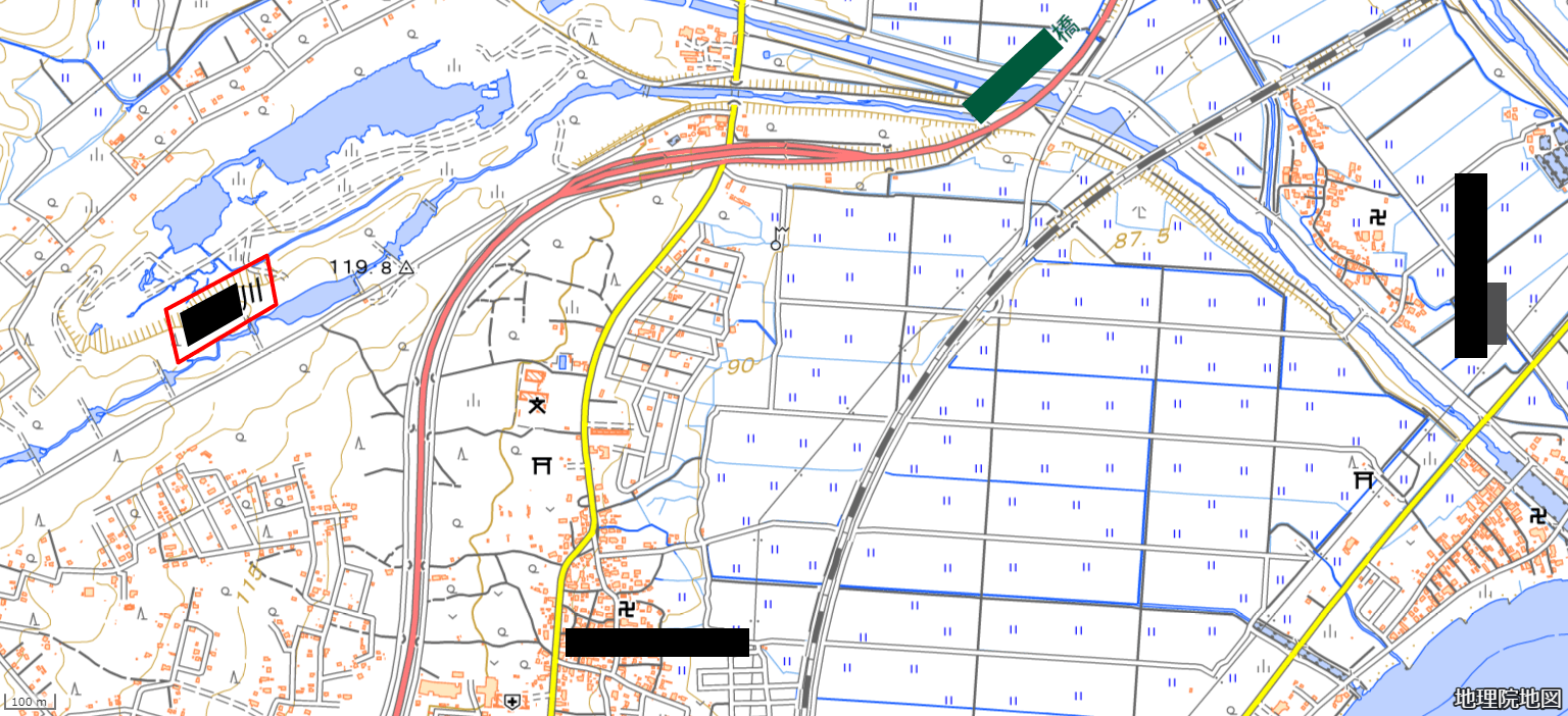 画像:電子地形図25000 (国土地理院) 標準地図を加工して作成。