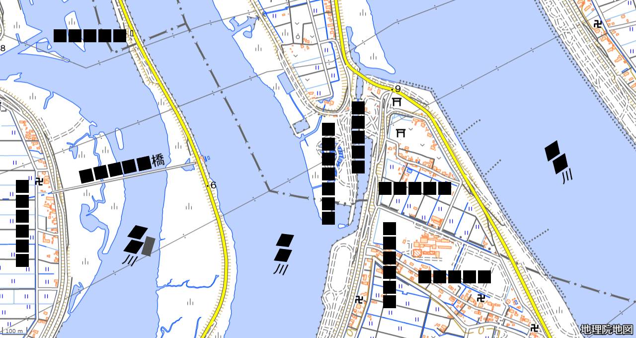 画像:電子地形図25000 (国土地理院) 標準地図を加工して作成。