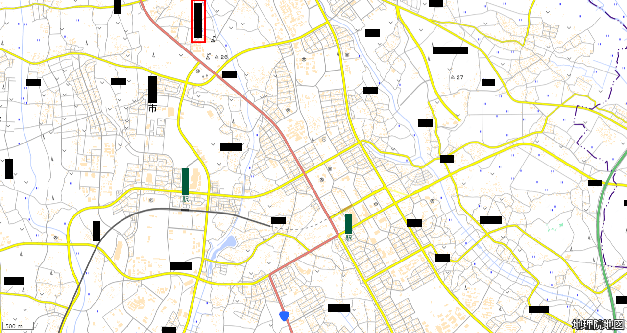 画像:電子地形図25000 (国土地理院) 標準地図を加工して作成。