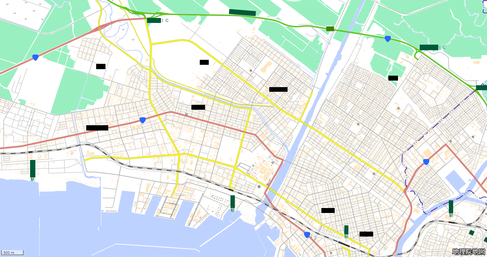 画像:電子地形図25000 (国土地理院) 標準地図を加工して作成。