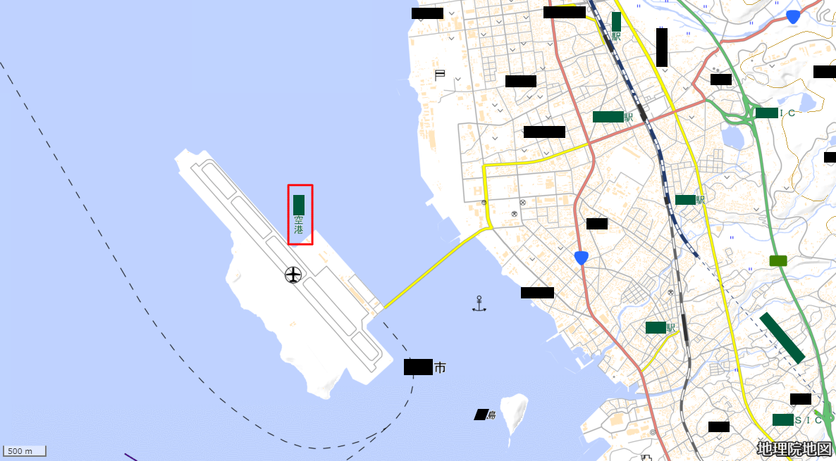 画像中央にある空港の名前 (赤枠) を答えてください。