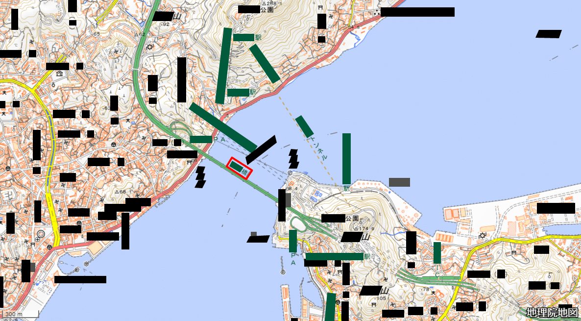 画像:電子地形図25000 (国土地理院) 標準地図を加工して作成。