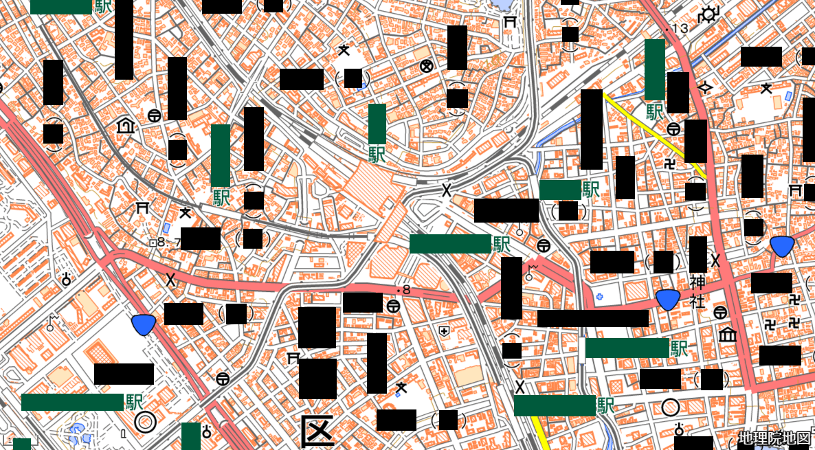 画像:電子地形図25000 (国土地理院) 標準地図を加工して作成。