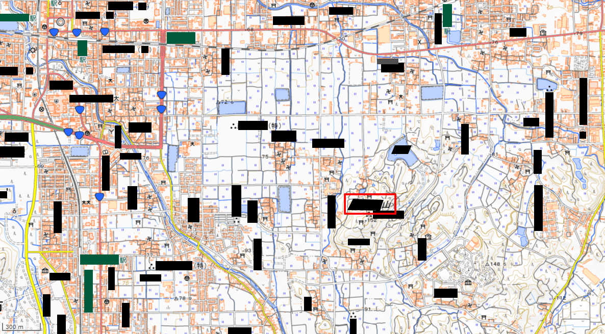 画像:電子地形図25000 (国土地理院) 標準地図を加工して作成。