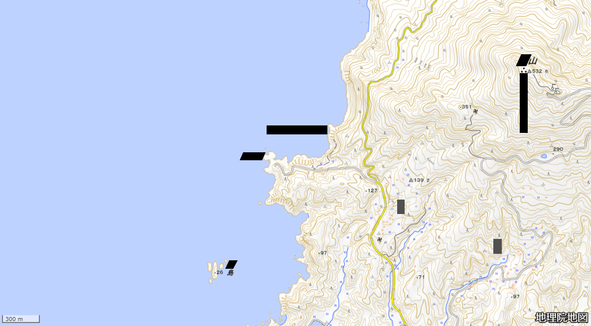 画像:電子地形図25000 (国土地理院) 標準地図を加工して作成。