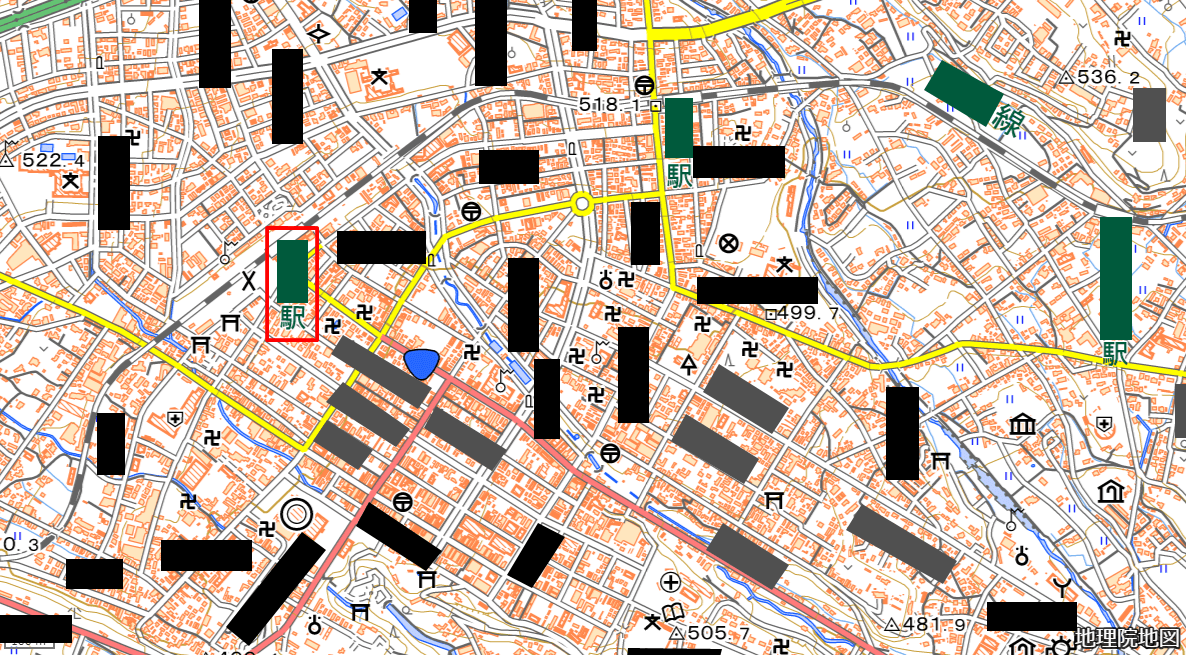 画像:電子地形図25000 (国土地理院) 標準地図を加工して作成。