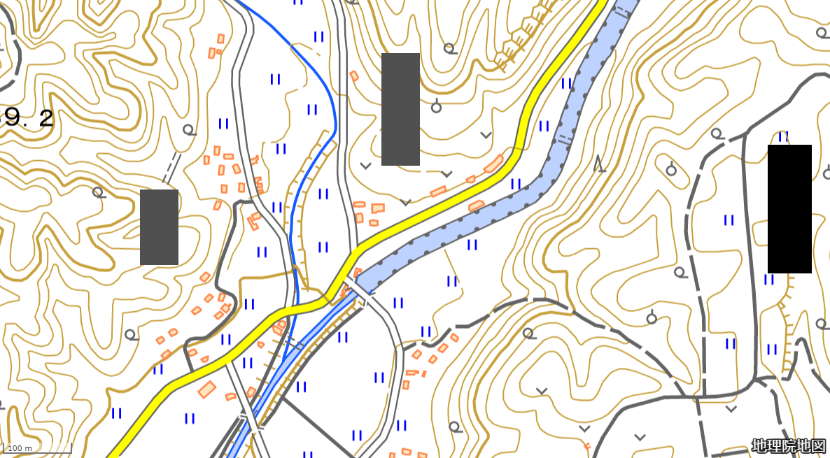 画像:電子地形図25000 (国土地理院) 標準地図を加工して作成。